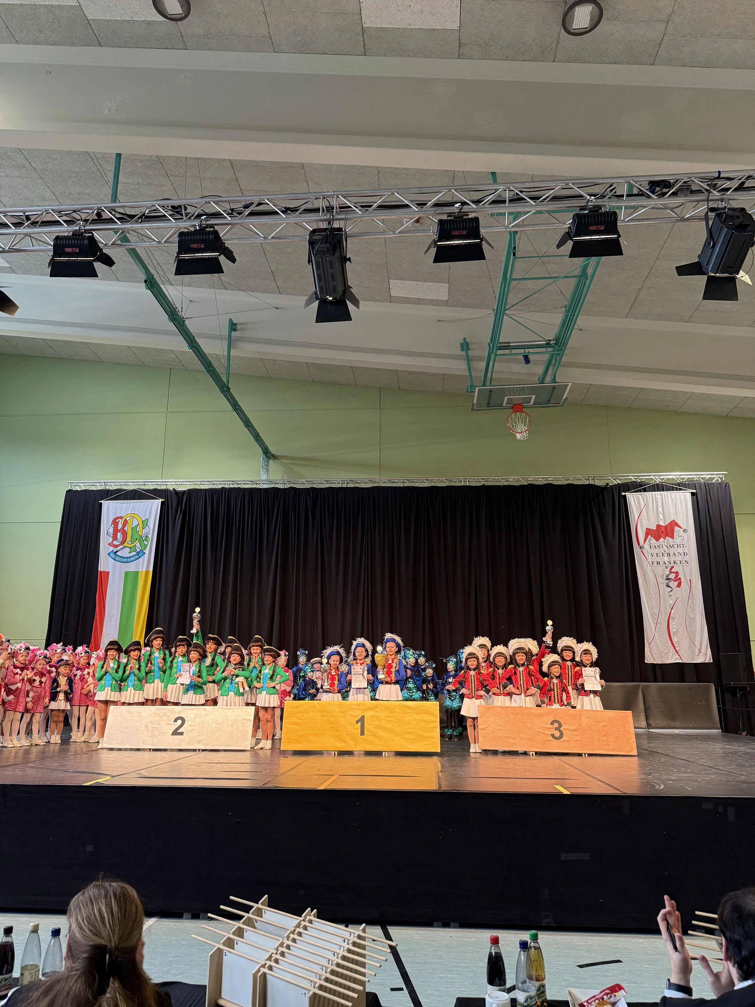 Nach der Mittagspause ging es für unsere Juniorengarde auf die Bühne. Sie präsentierten einen wunderschönen Tanz und wurden mit 457 Punkten belohnt. Damit ertanzten sie sich nicht nur ihre neue Bestleistung, sondern auch den Oberfränkischen Meister. 🥇